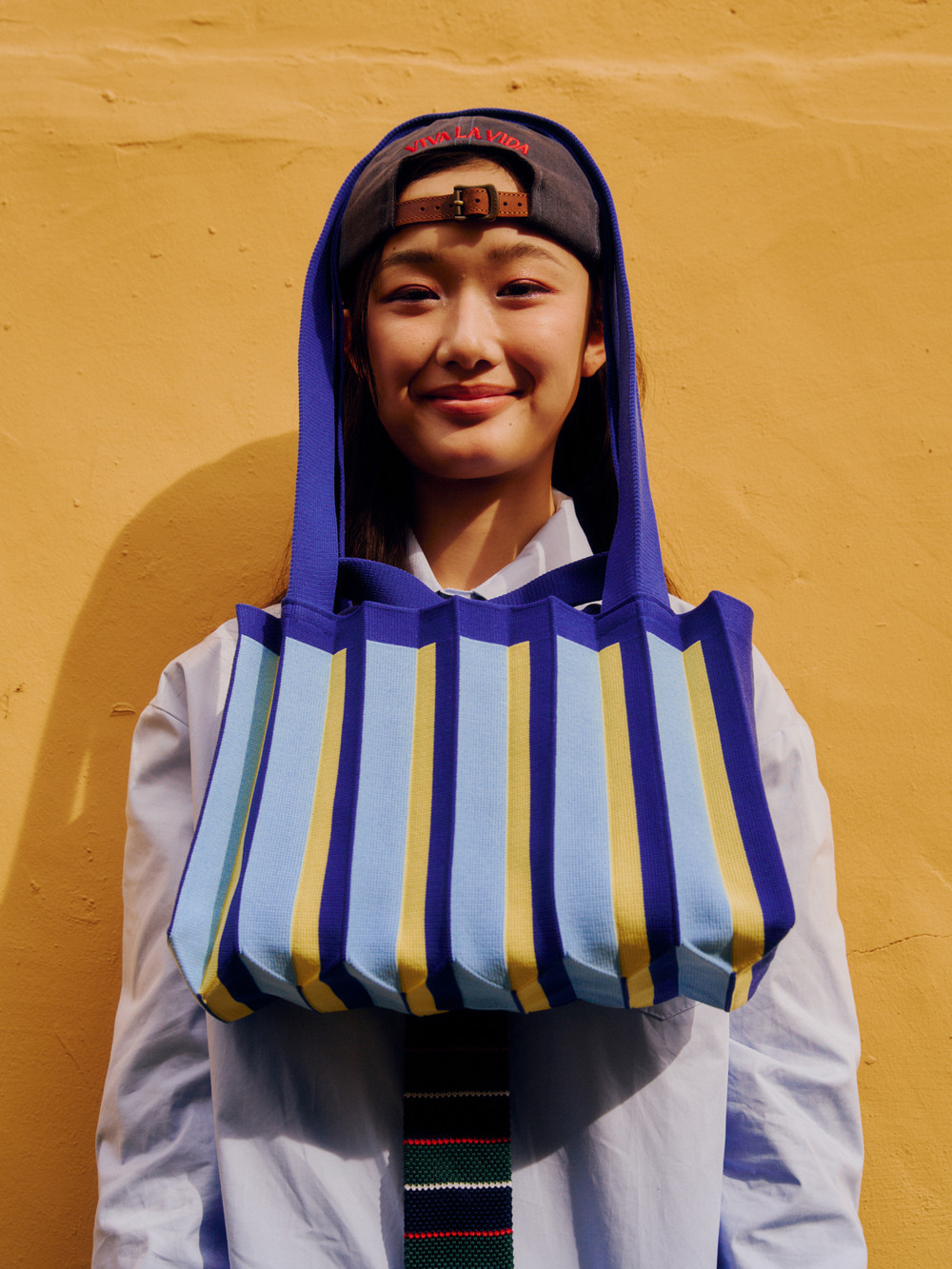 PLEATSMAMA utilizes eco-friendly materials and modern knitting techniques to make its bags and accessories, seeking fashion that definitively pioneers a sustainable life in a practical way.