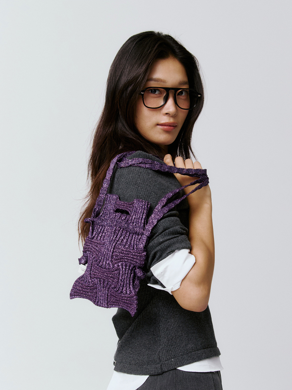 Mini Cross Bow Bag Glitter Deep PurpleNEWTIME SALE