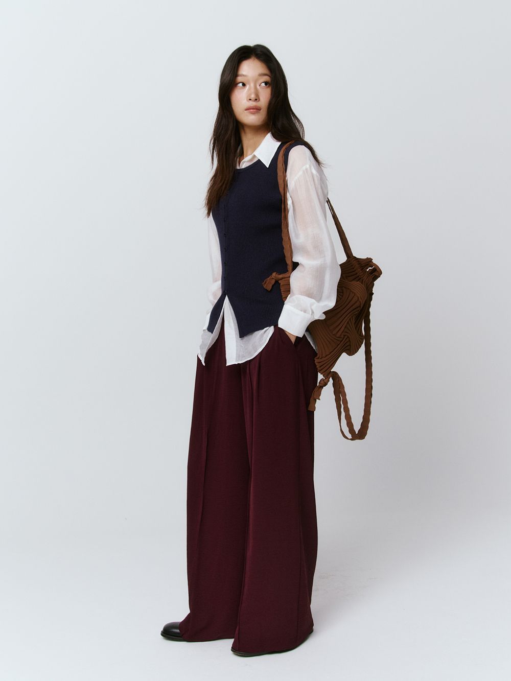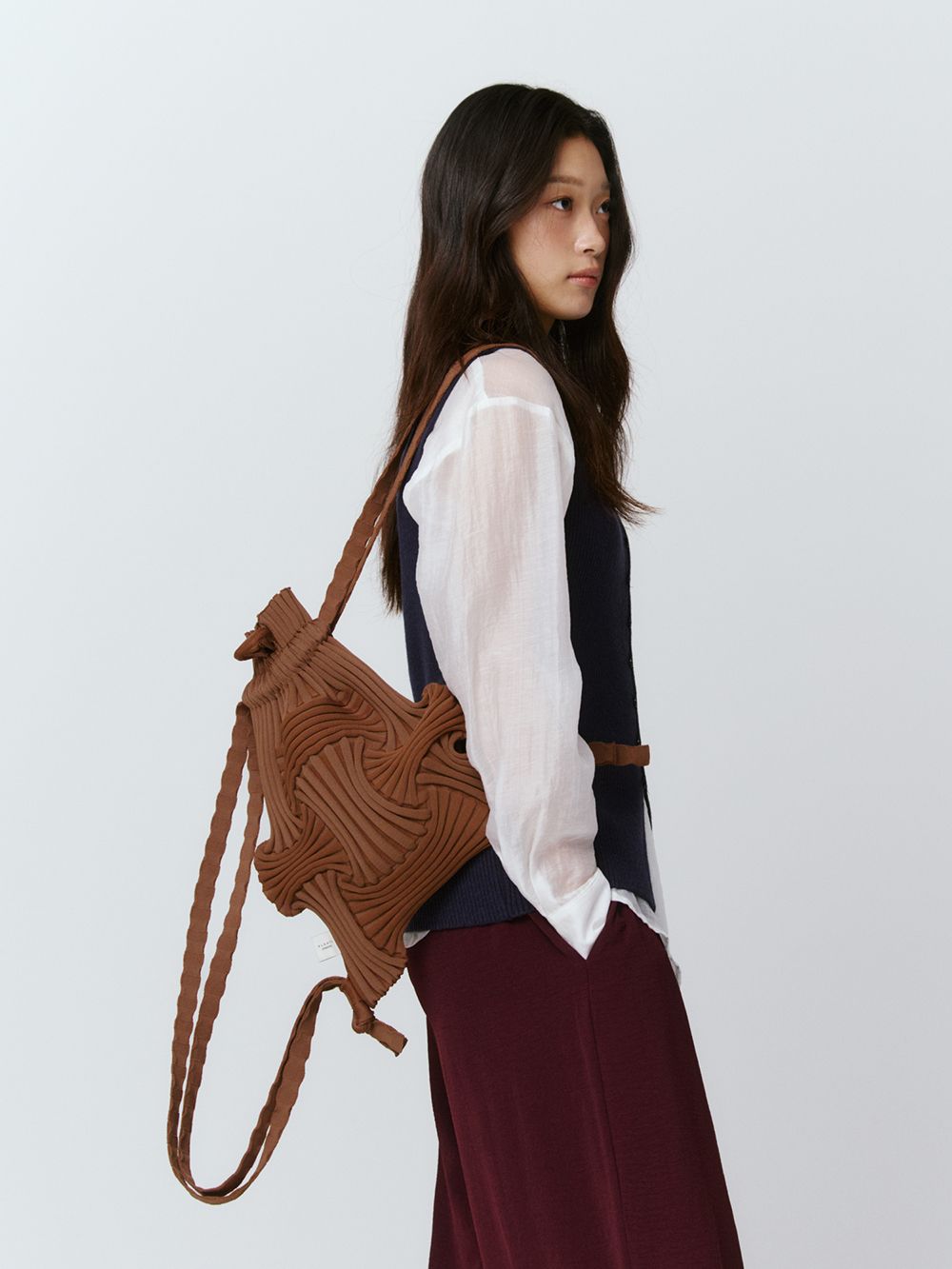 * 니트와 플리츠 디자인 특성상 제품의 가로, 세로 사이즈는 유동적으로 늘어날 수 있습니다.