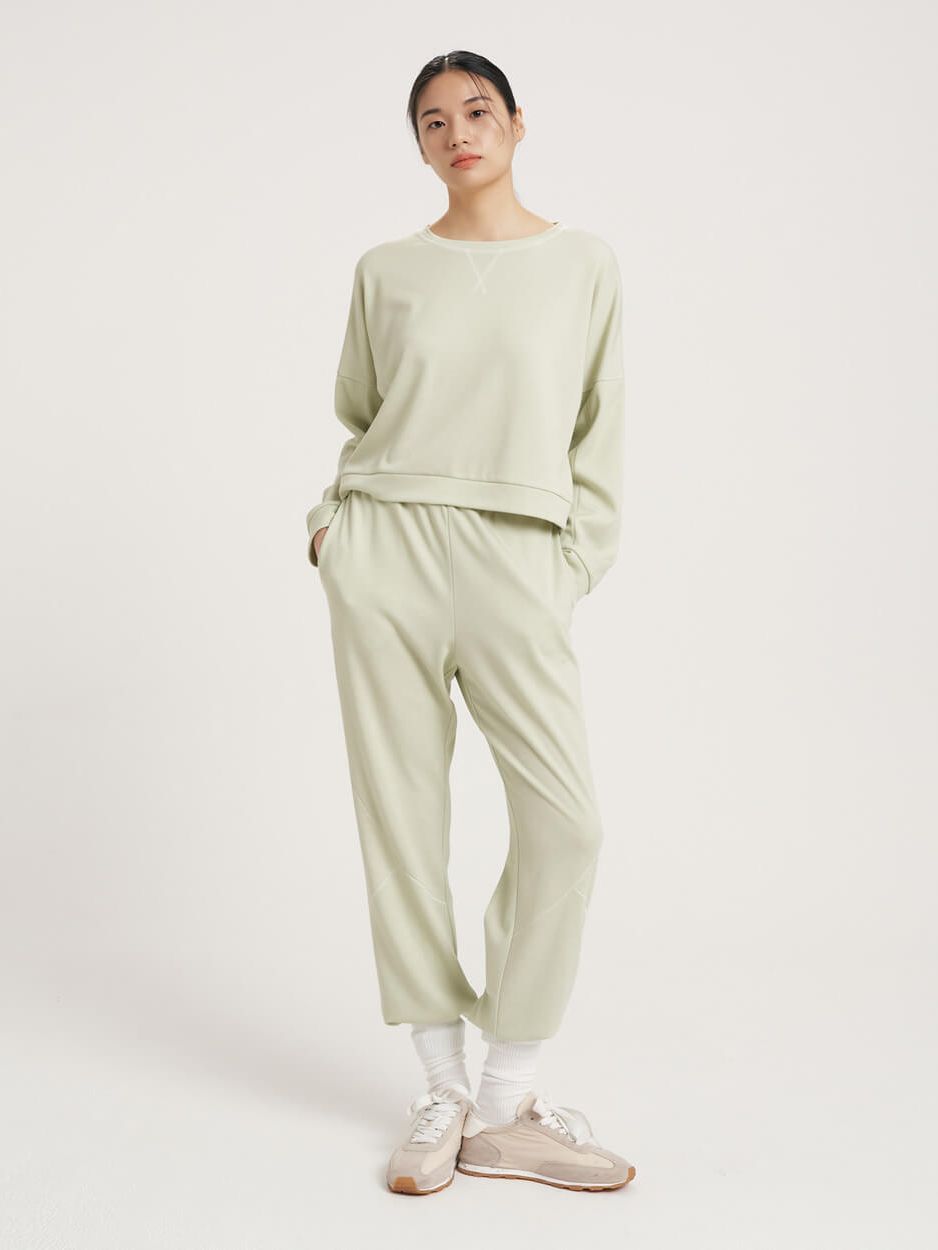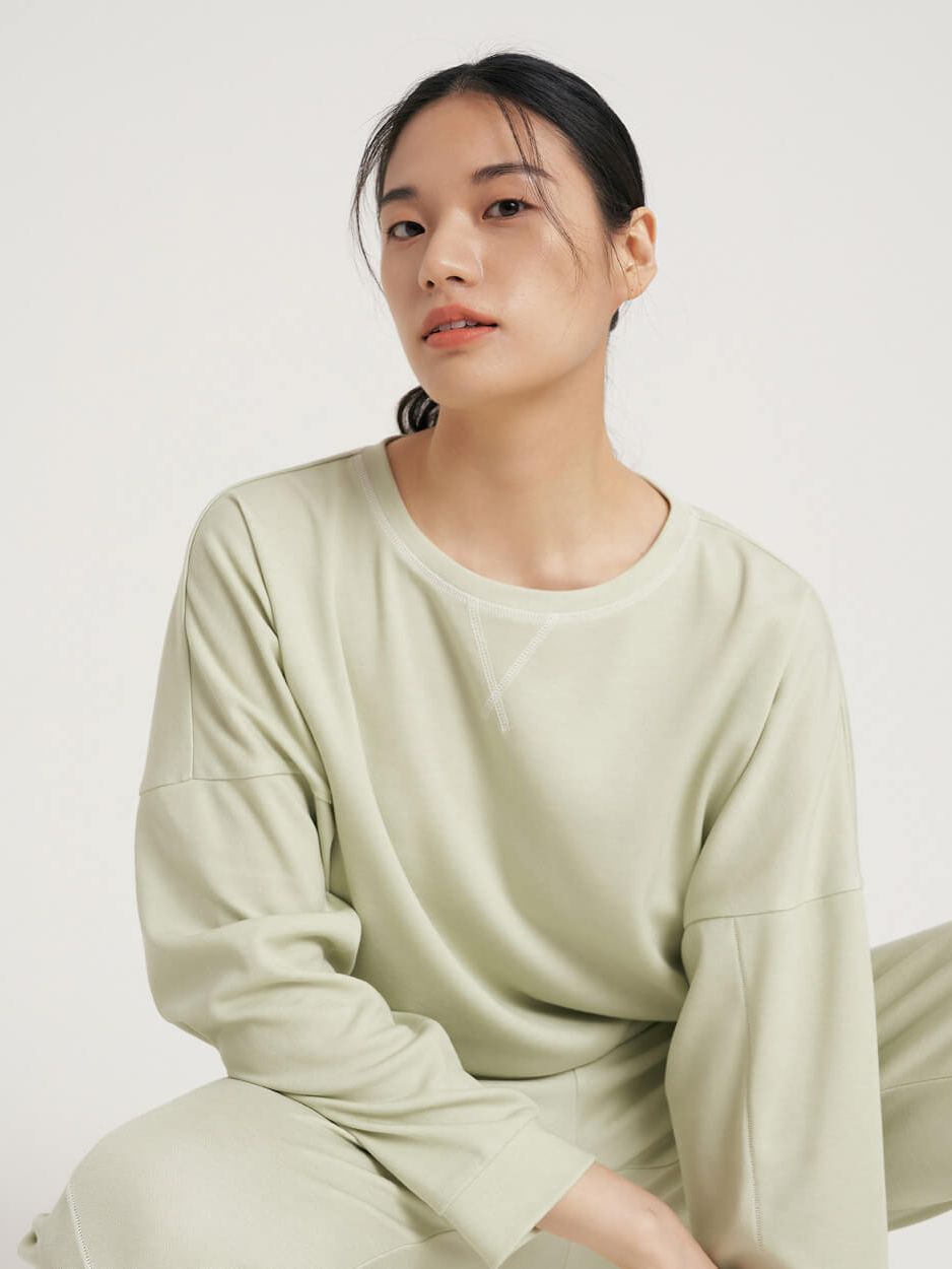 It is made of environment-friendly materials recycled from PET bottles. / Thanks to its superior sweat absorption and quick drying functions, it absorbs and discharges sweats fast and enhances the comfort of the body. / It feels light and soft to the fingers.