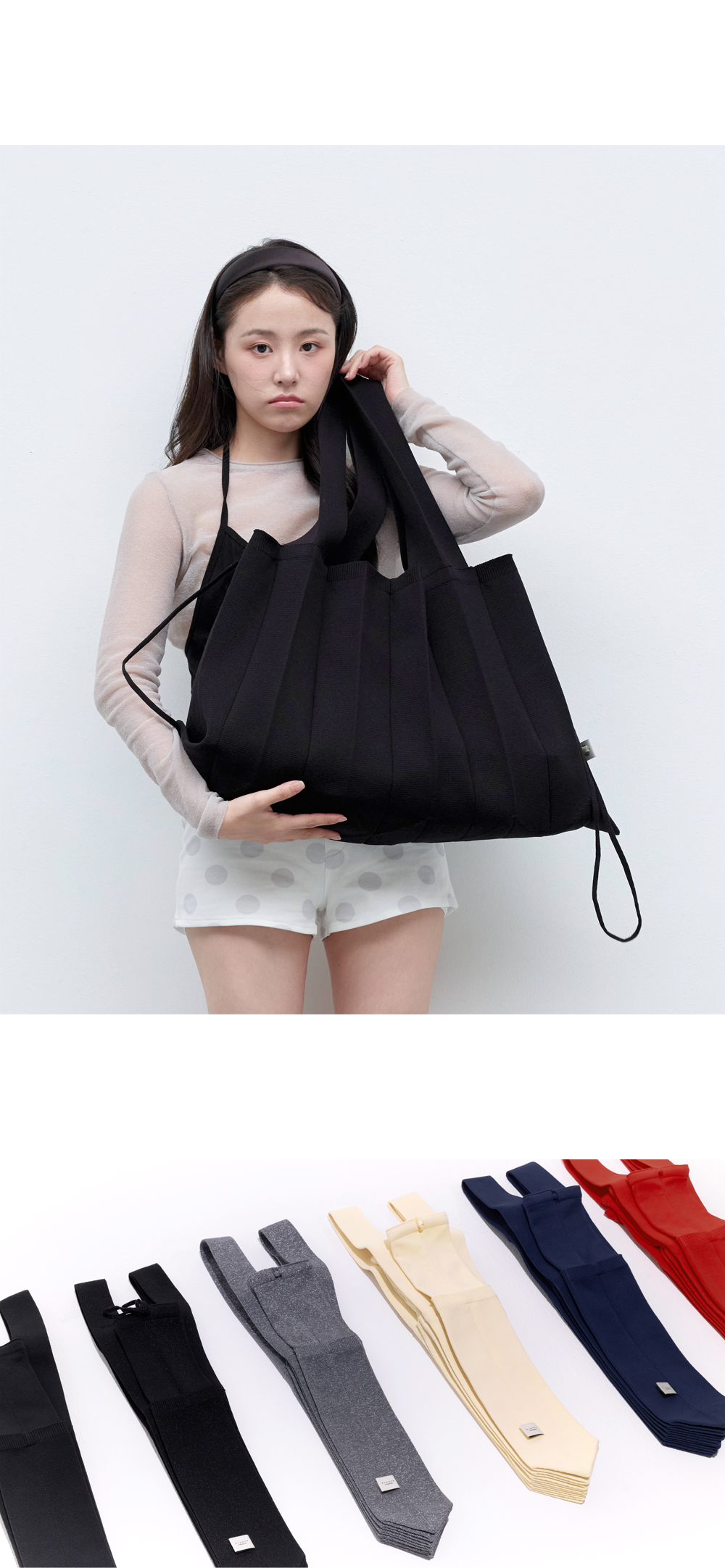 * The width and length of the product may flexibly stretch due to the characteristics of the knit and pleats design.