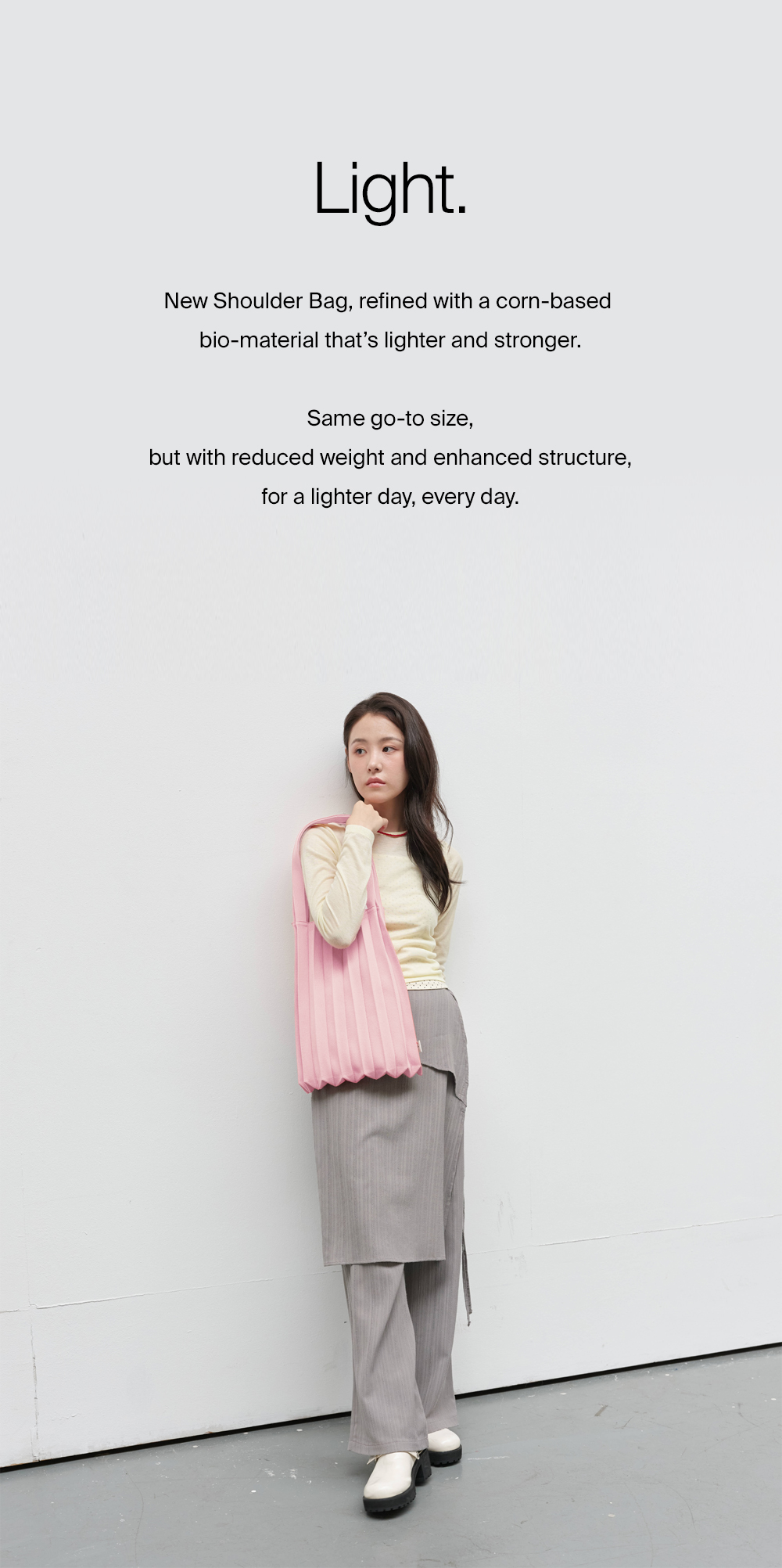 * The width and length of the product may flexibly stretch due to the characteristics of the knit and pleats design.